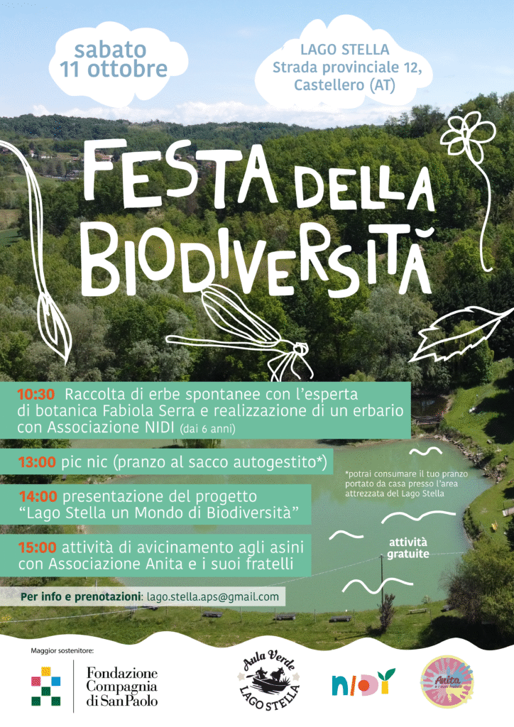 Attività gratuita, abbinata alla passeggiata alla scoperta di erbe spontanee con la botanica Fabiola Serra e in sinergia con la Festa della Biodiversità all’interno della proposta progettuale “Lago Stella un Mondo di Biodiversità”.