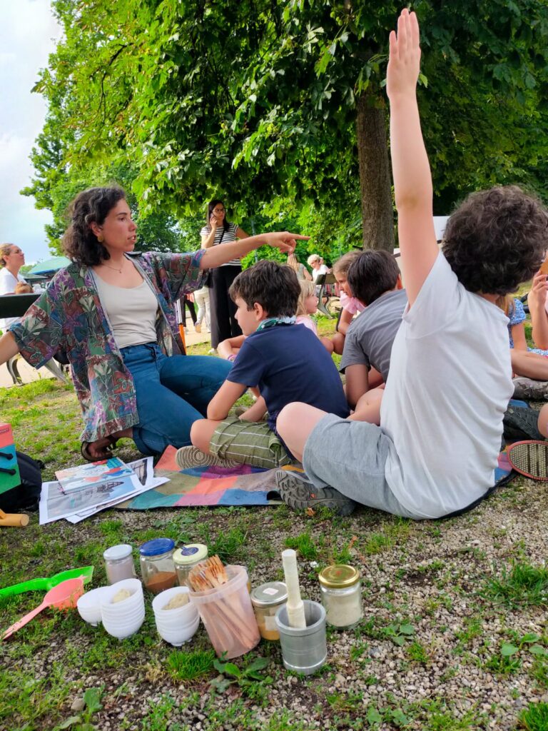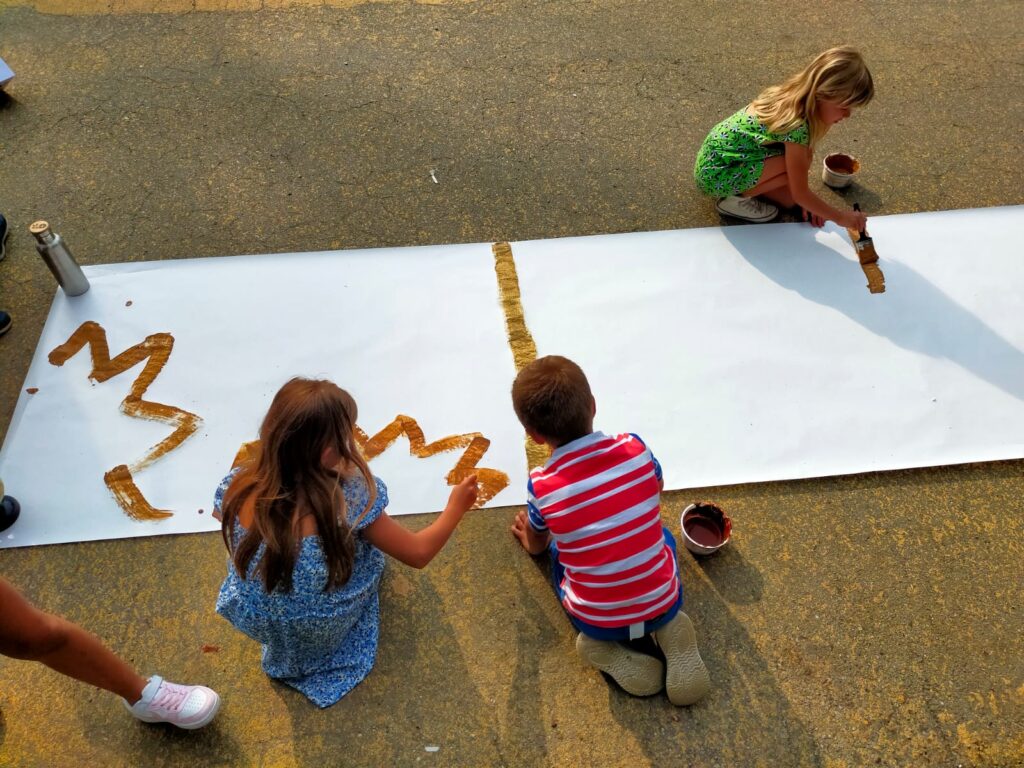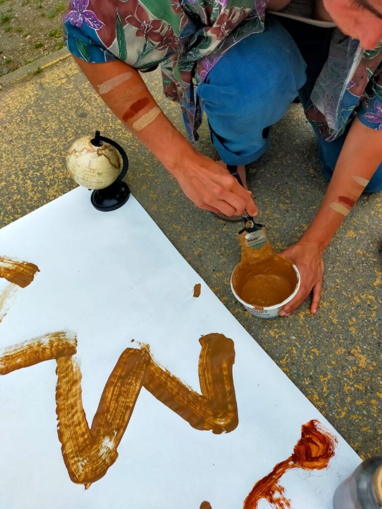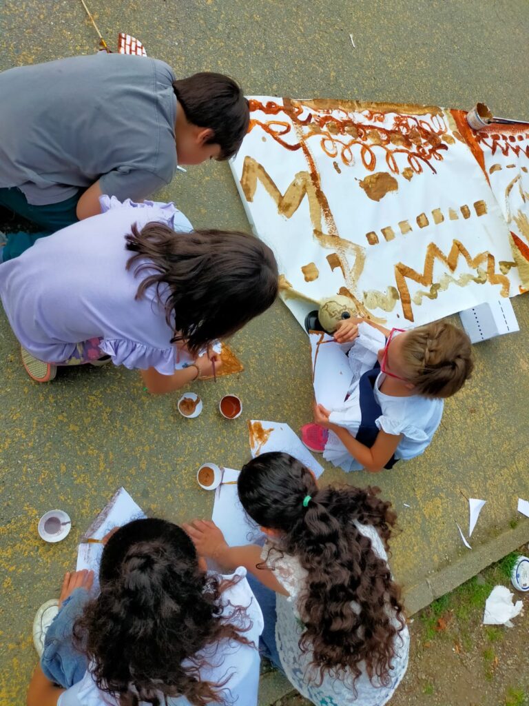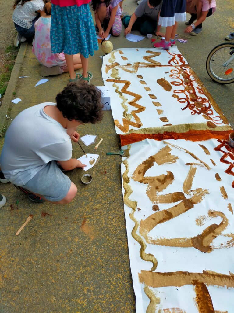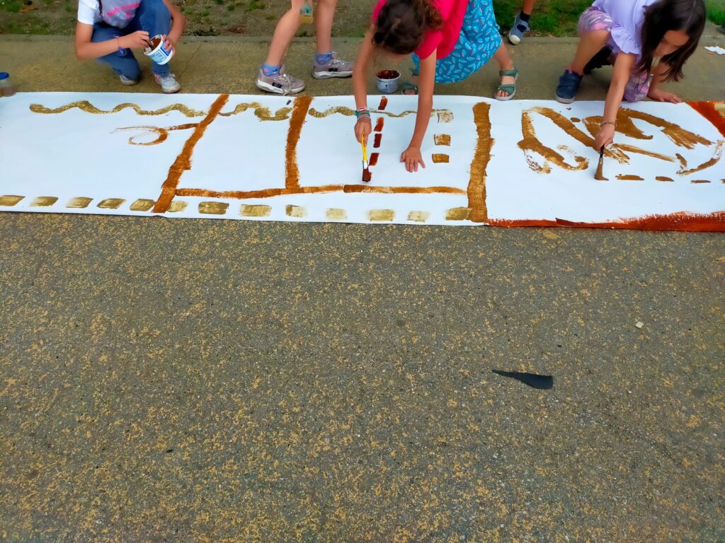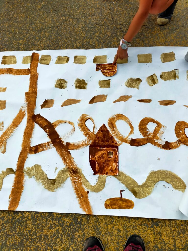 Con le mani immerse nei colori della terra, abbiamo tracciato strade, sentieri, incorci per realizzare un paesaggio collettivo.